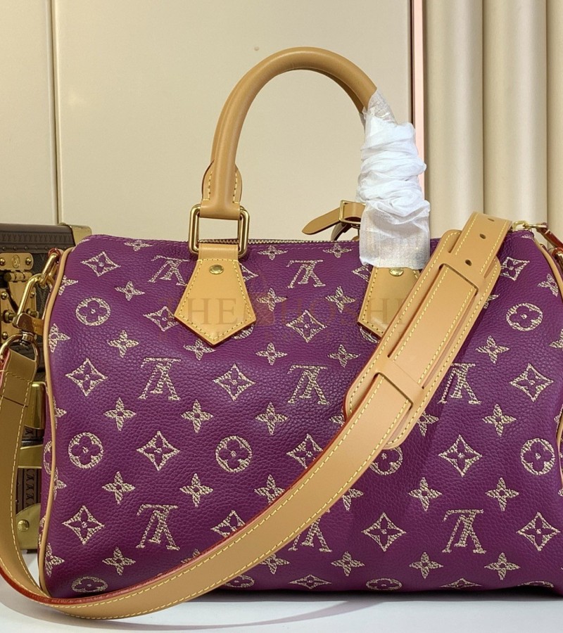 LOUIS VUITTON SPEEDY BANDOULIERE 30 MONOGRAM EMBROIDERED CALFSKIN LEATHER PURPLE 30×21×17CM