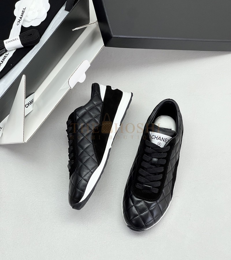 CHANEL LEATHER SNEAKERS BLACK CALFSKIN LOW-TOP WOMEN'S