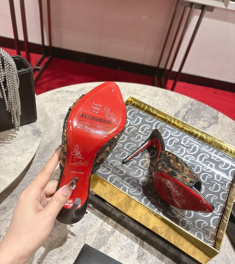 CHRISTIAN LOUBOUTIN CL POINTED-TOE HEELS GLOSSY CALFSKIN WITH LEOPARD SEQUINS BLACK SIZE WOMEN'S SIZE 34-42 HEEL 10CM MASTER QUALITY